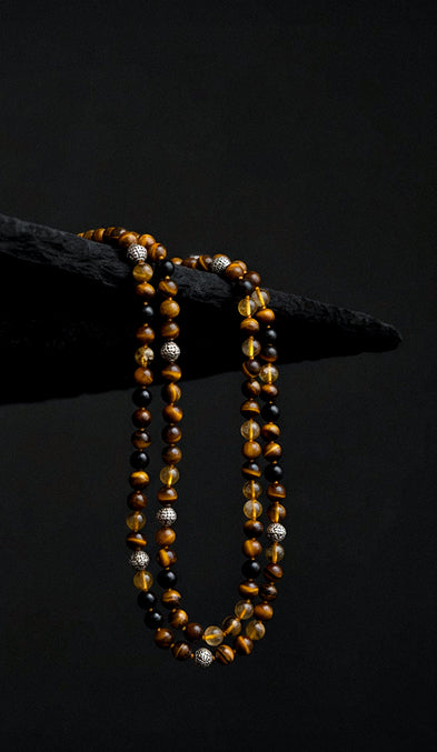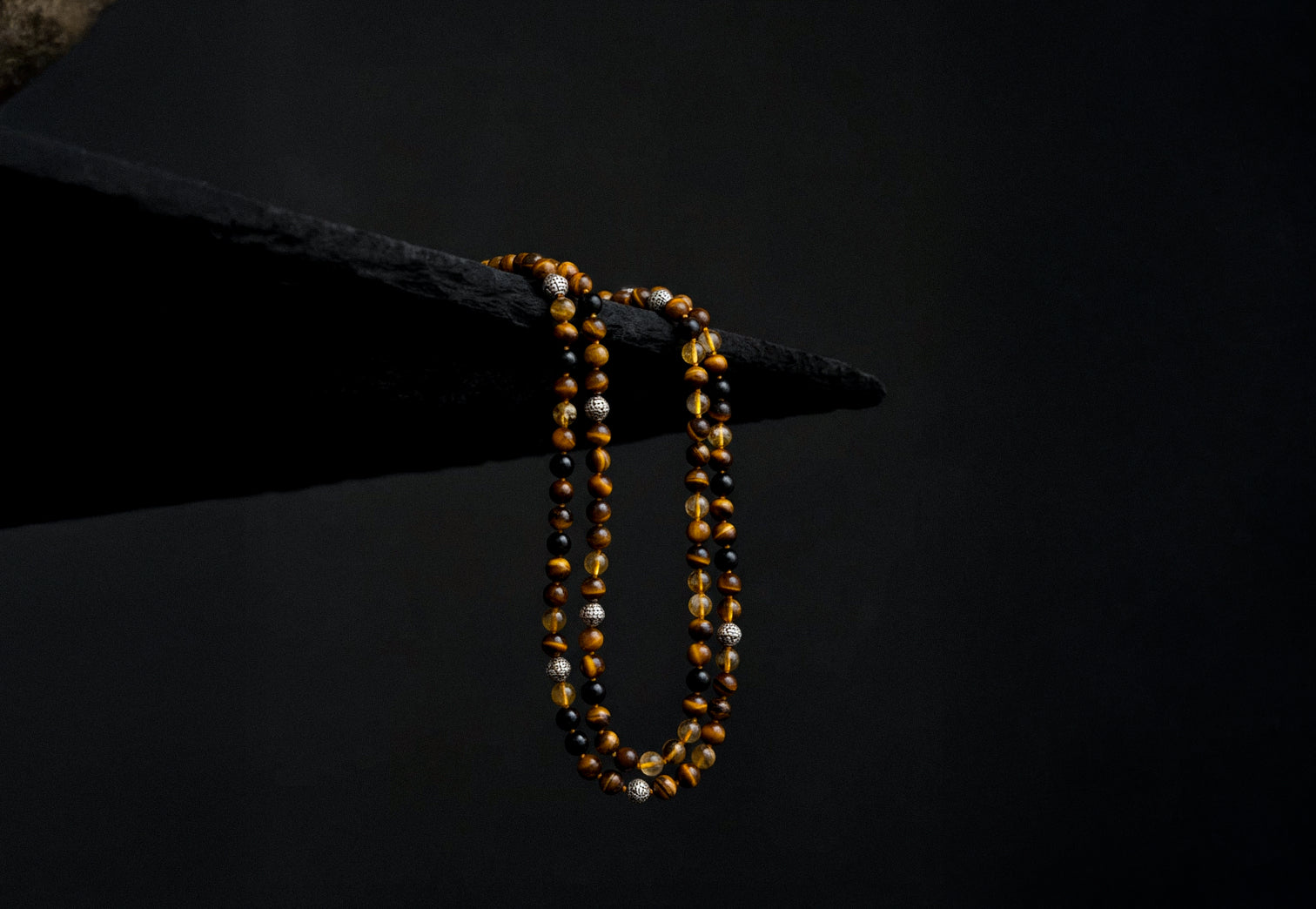 Kaplan Gözü-Sitrin-Lav Taşı Doğal Taş 108 Niyet Taşı Mala Kolyesi