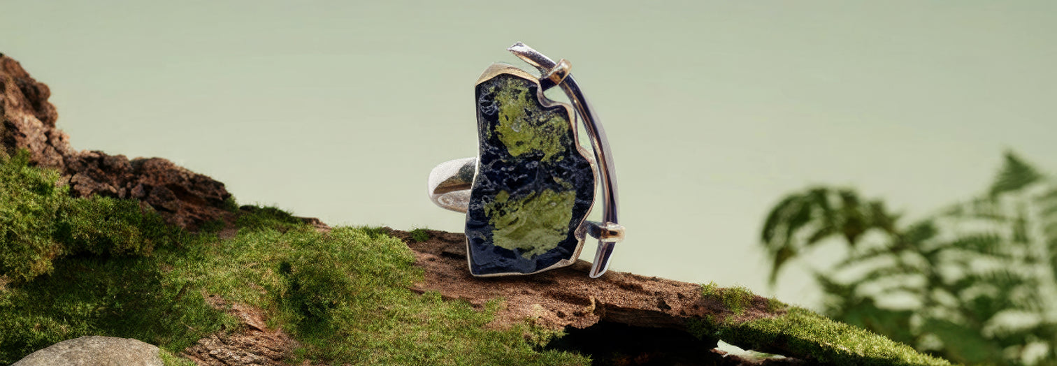 Sertifikalı Özel Tasarım İridyumlu Malahit Gümüş Yüzük