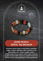 Akrep Burcu Bileklik Dumanlı Kuvars, Golden Obsidyen, Jasper, Kaplan Gözü, Kırmızı Akik, Pembe Kuvars