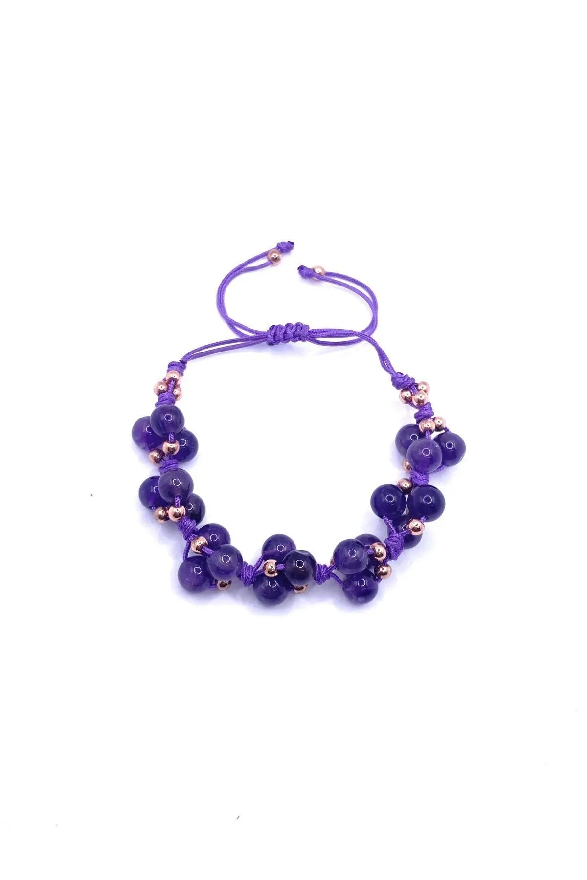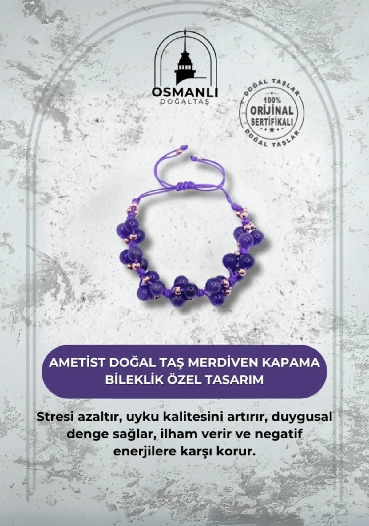 Ametist Doğal Taş Merdiven Kapama İpli Her Bileğe Uygun Bileklik