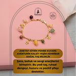 Ametist-Sitrin-Pembe Kuvars-Aventurin-Kalsit-Yeşim-Kehribar Doğal Taş Sarı Gümüş Bileklik