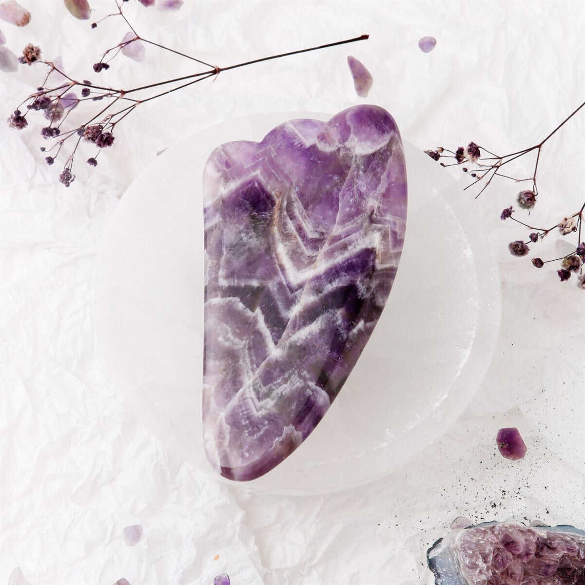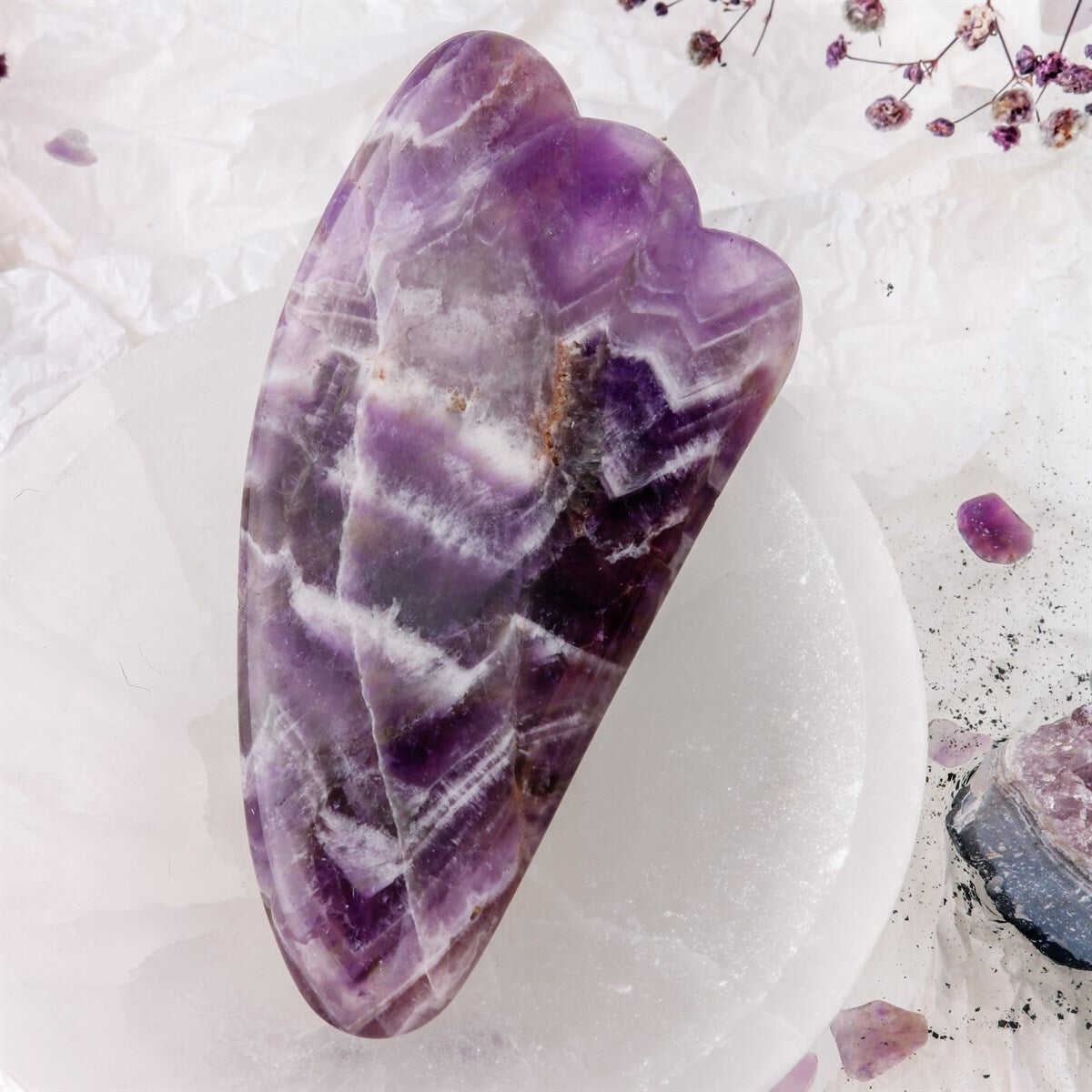 Bol bol gülüyor musunuz, yoksa hayat çok mu çok yoruyor sizi? Hayatın bu temposu içinde bir de kaz ayaklarını düşünmenize gerek yok.Cildiniz için özel olarak tasarlanan Osmanlı Ametist Kalp Gua Sha ile tanışın.Gül bahçesini andıran morumsu, pembe rengiyle insana daha ilk görüşte güzel hissettiren ametist taşı… Nam-ı diğer ‘Aşk Taşı’…Hipofiz bezleri ve Beyinle olan etkileşimiyle tanınan, cilt bakımı için karma ciltlere birebir olan taştır.Vücudun toksinlerden arınmasını, kan hastalıklarının giderilmesi, kanserin önlenmesi ve bedenin dinç kalmasını sağladığı geçmişten beri düşünüle gelen başlıca yönleri… Ametist’in tarih boyunca faydalı olduğu bilinen daha başka özellikleri:
