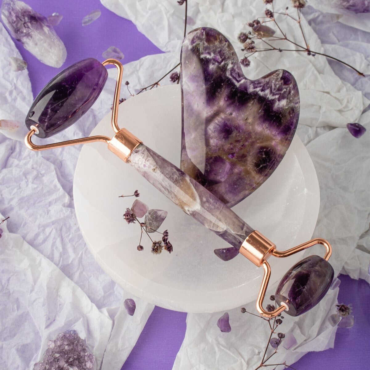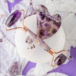 Ametist Taşı Masaj Takımı - Roller ve Gua Sha Kalpli Set