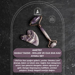 Ametist Taşı Masaj Takımı - Roller ve Gua Sha Kaz Ayaklı Set