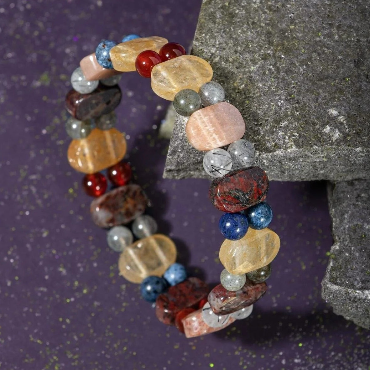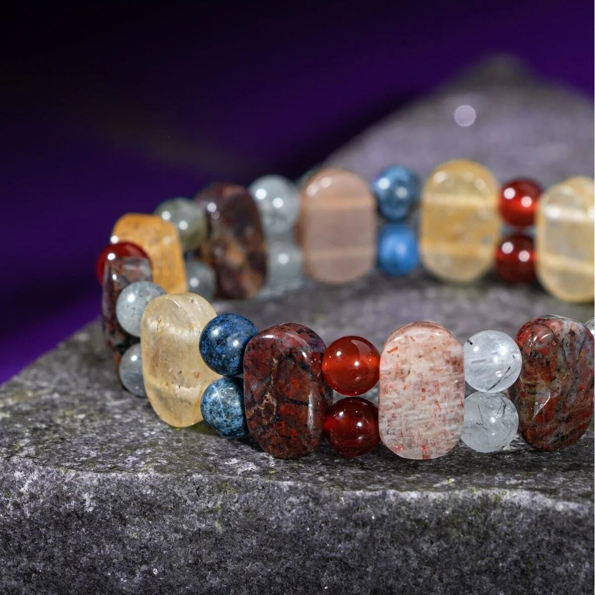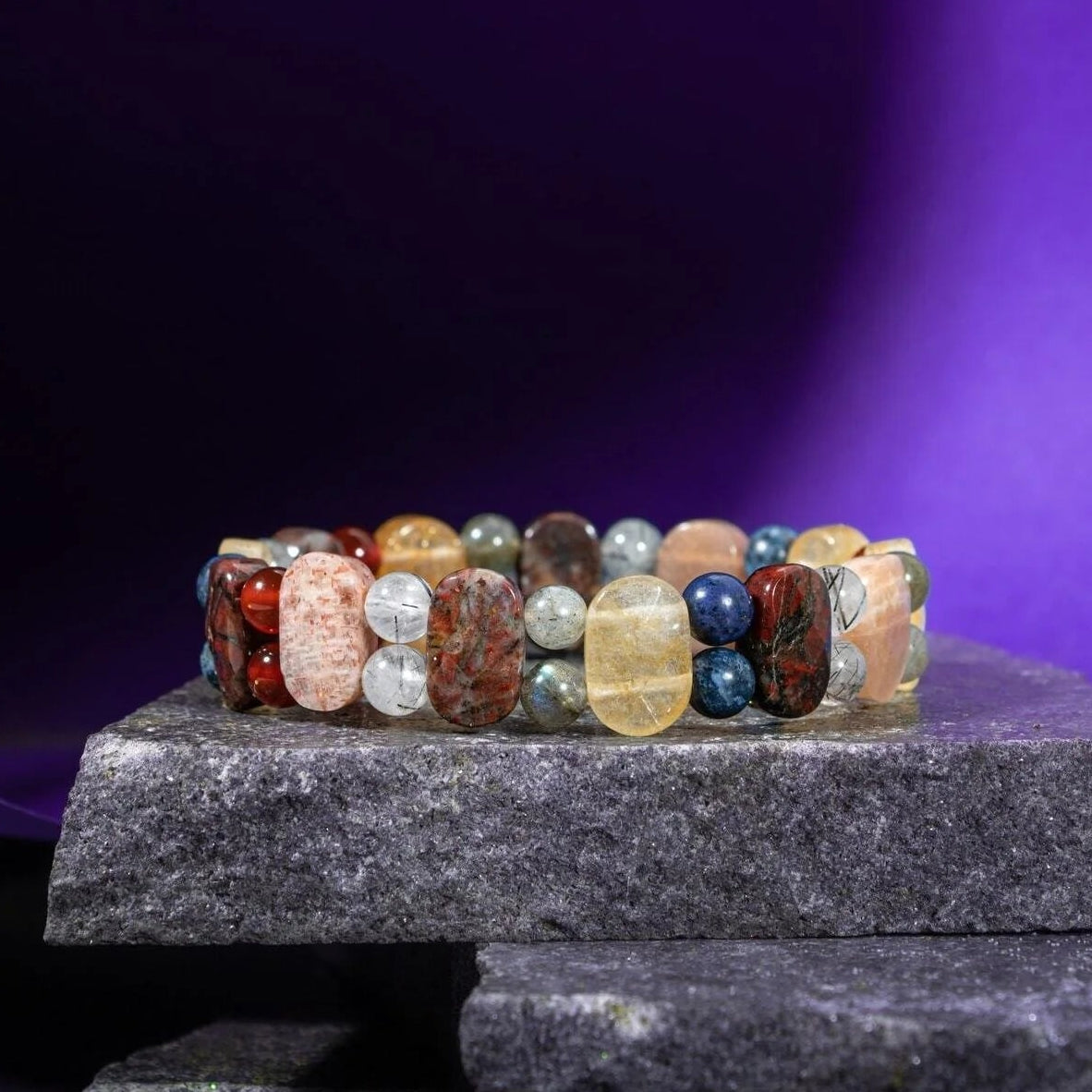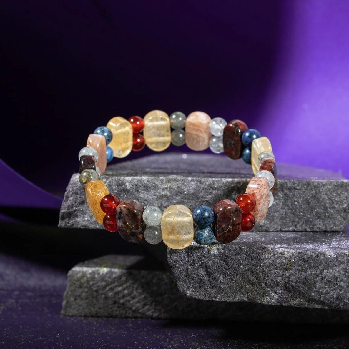 Aslan Burcu Bileklik Bronzit, Dumortierit, Güneş Taşı, Jasper, Kırmızı Akik, Labradorit, Rutilli Kuvars, Sitrin
