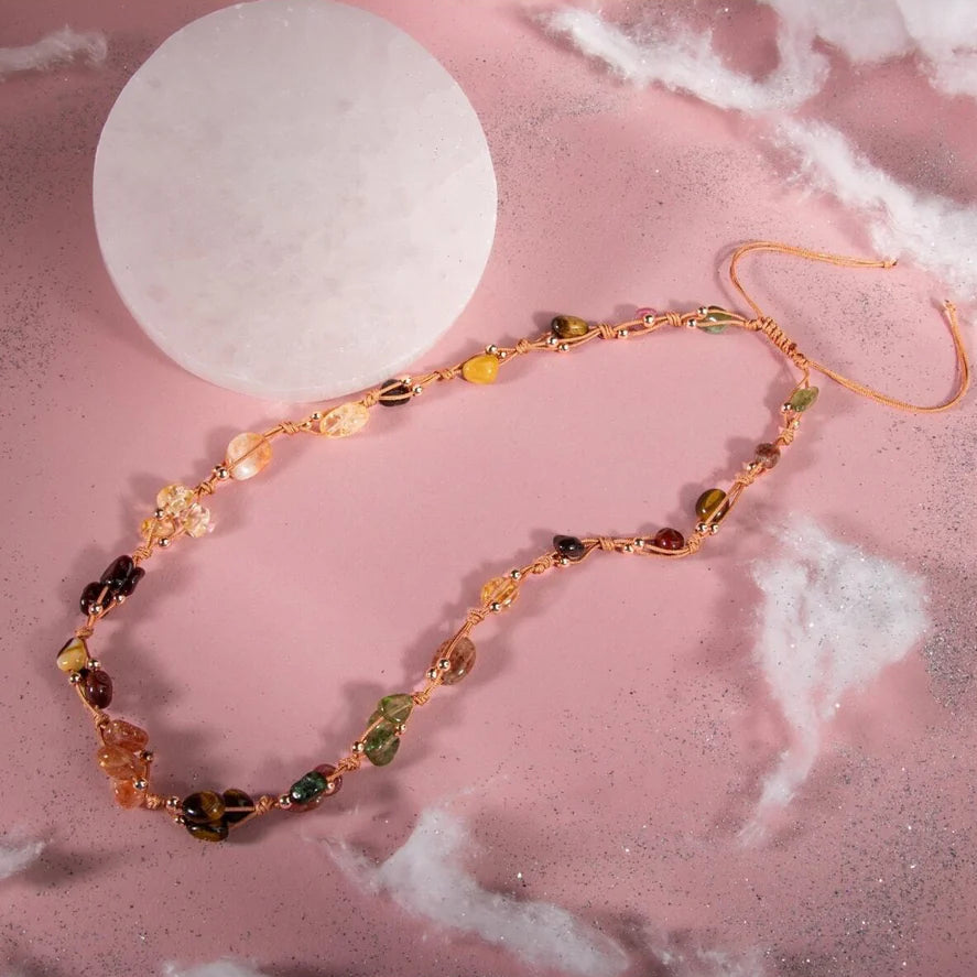 Aslan Burcu Kolye Bordo Granat Lal, Güneş Taşı, Jasper, Kaplan Gözü, Kehribar, Renkli Turmalin, Sitrin