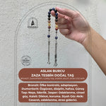 Aslan Burcu Zaza Tesbih Doğal Taş Bronzit, Dumortierit, Güneş Taşı, Jasper, Kalsit, Siyah Göz Akik