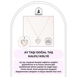 Ay Taşı Doğal Taş Kalpli Kolye, Gümüş Zincir