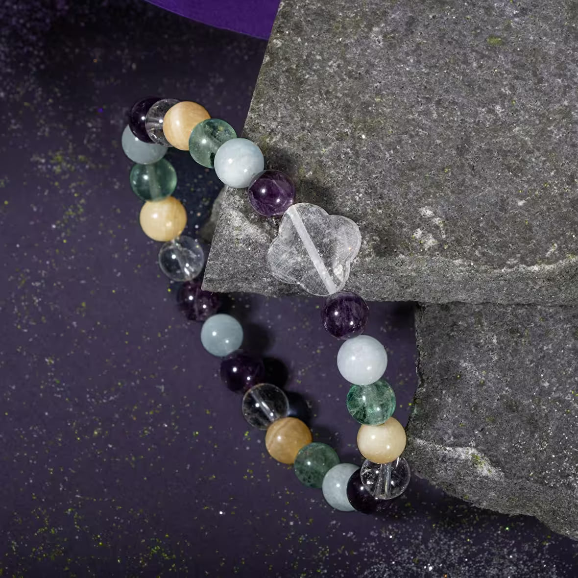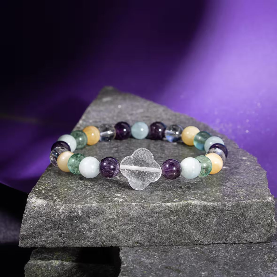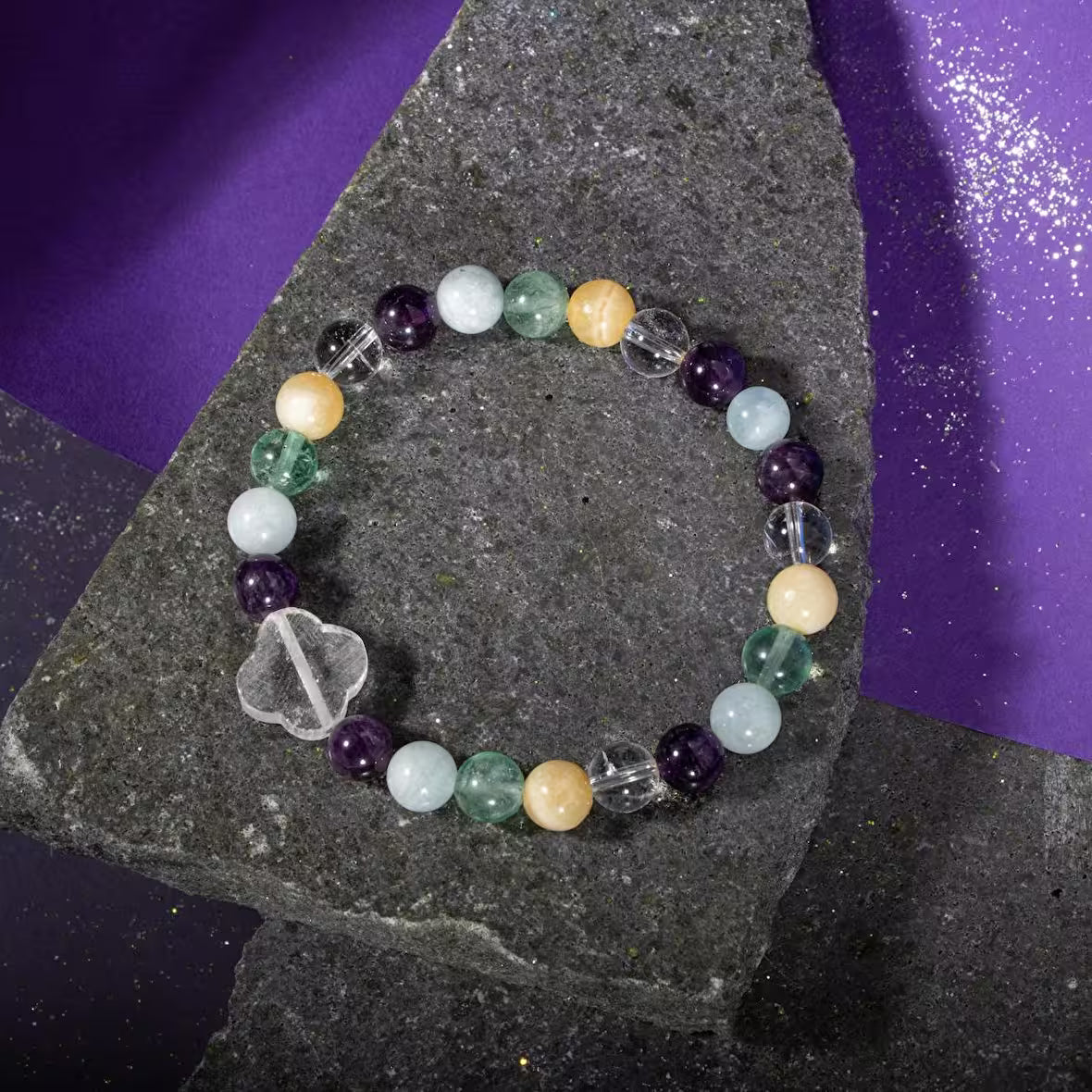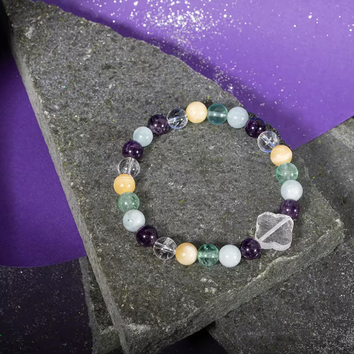 Balık Burcu Bileklik Akuamarin, Ametist, Kalsit, Kristal Kuvars, Yeşil Florit