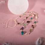 Başak Burcu Kolye Ametist, Bordo Granat Lal, Jasper, Mavi Apatit, Pembe Kuvars, Yeşil Aventurin, Zebercet (Peridot)