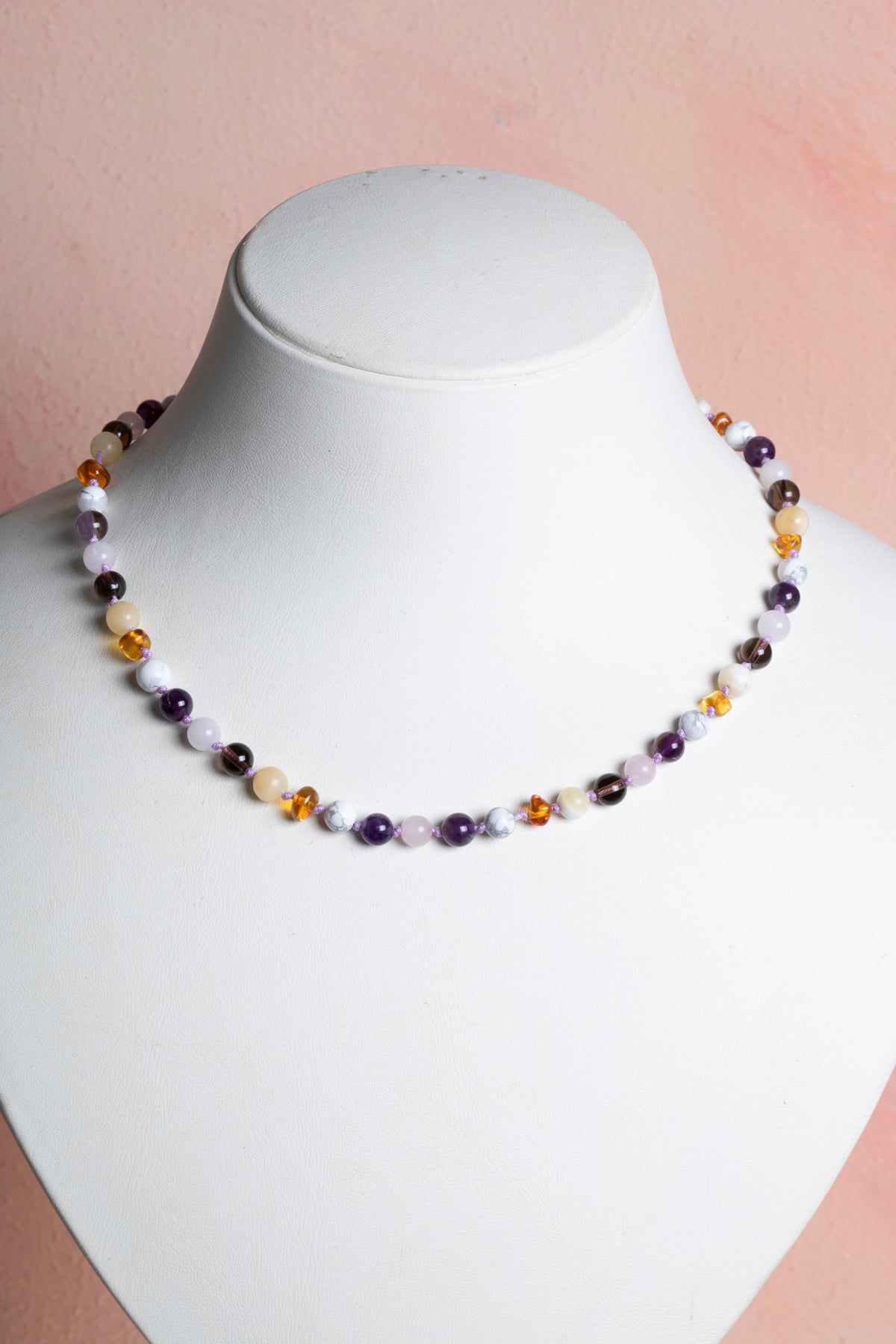 Bebek Kehribar Kalsit-Dumanlı Kuvars-Pembe Kuvars-Kehribar-Havlit-Ametist
