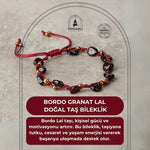 Bordo Granat Lal Natürel Kesim Doğal Taş Makrome Bileklik