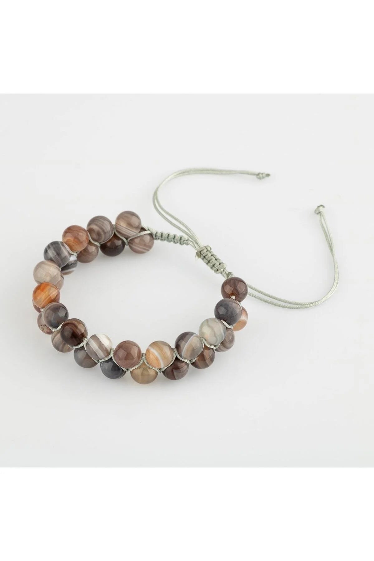 Botswana Akiği 8mm Çift Sıra Makrome Doğal Taş Bileklik