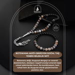 Botswana Akiği-Obsidyen Doğal Taş Tesbih Bileklik Seti