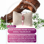Çilek Kuvars-Pembe Kuvars Doğal Taş Makrome Örgü Bileklik