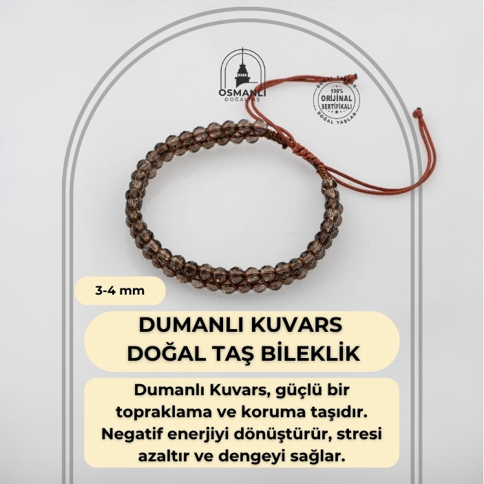Dumanlı Kuvars 3-4mm Çift Sıra Doğal Taş Bileklik