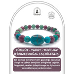 Hakiki Doğal Sertifikalı Zümrüt - Yakut - Turkuaz (Firuze) Doğal Taş Misinalı Bileklik Fasetli 6mm