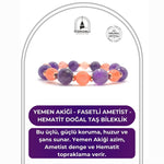 Hakiki Orijinal Sertifikalı Yemen Akiği - Fasetli Ametist - Hematit Doğal Taş Misinalı Bileklik