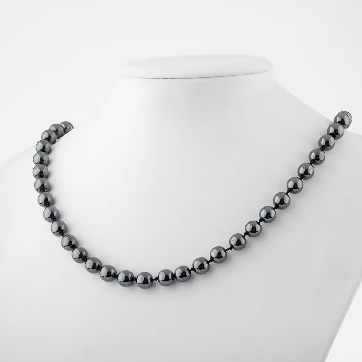 Hematit 8 mm Düğümlü Doğal Taş Kolye