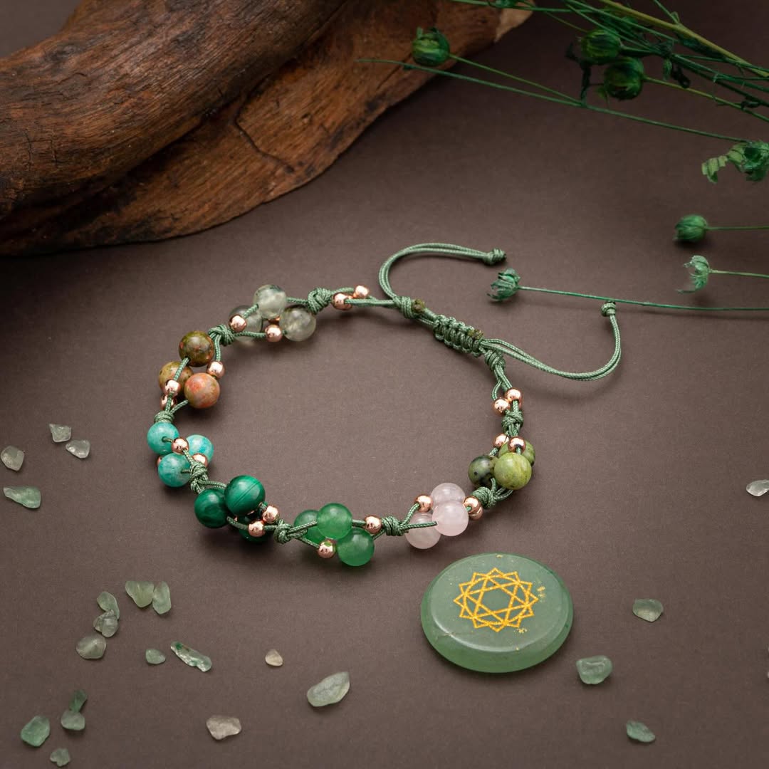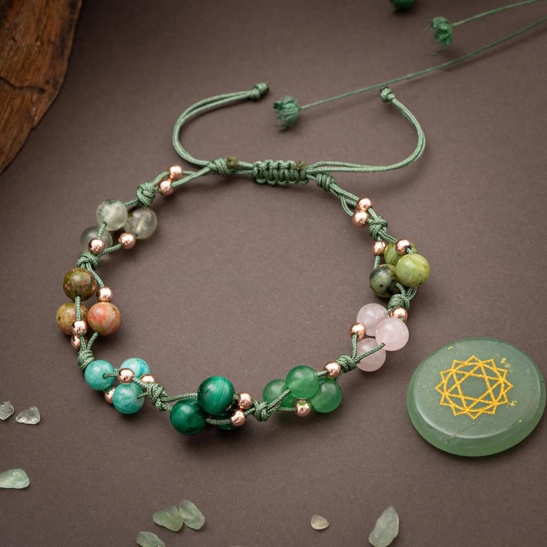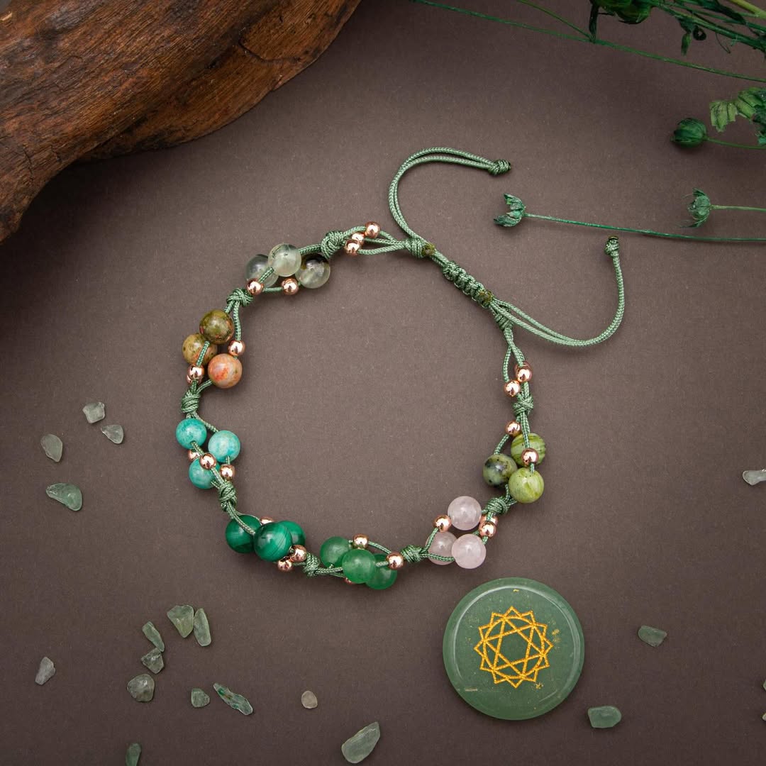 Kalp Çakrası Doğal Taş Bileklik - Prehnit-Unakit-Amazonit-Malakit-Aventurin-Pembe Kuvars-Yeşim