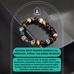 Kaplan Gözü-Bordo Granat Lal-Krizokol Doğal Taş Erkek Bileklik