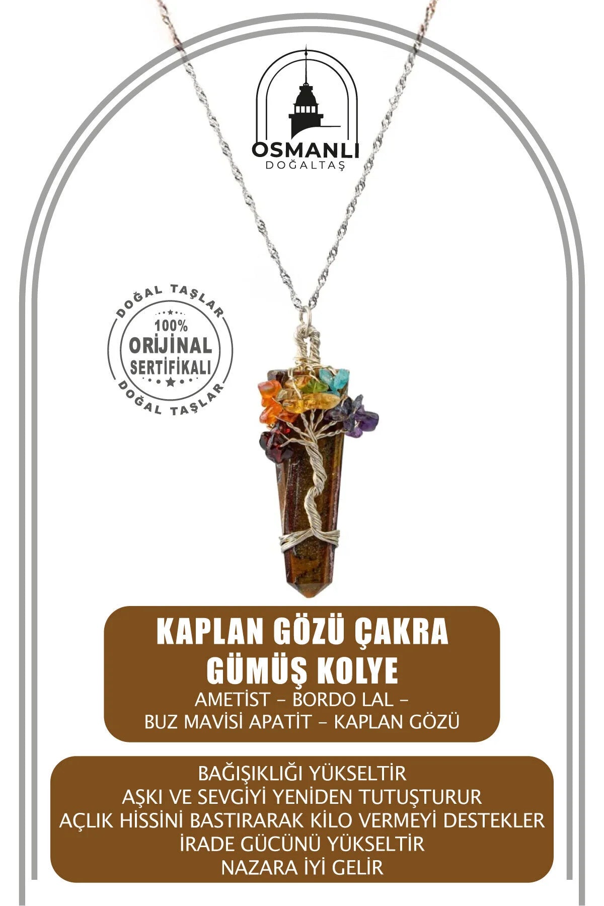 Kaplan Gözü Çakra Gümüş Kolye Kaplan Gözü