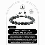Karlı Obsidyen 8mm Merdiven Kapama Doğal Taş Bileklik
