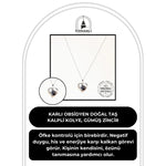 Karlı Obsidyen Doğal Taş Kalpli Kolye, Gümüş Zincir