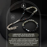 Labradorit-Siyah Göz Akik Doğal Taş Tesbih Bileklik Seti