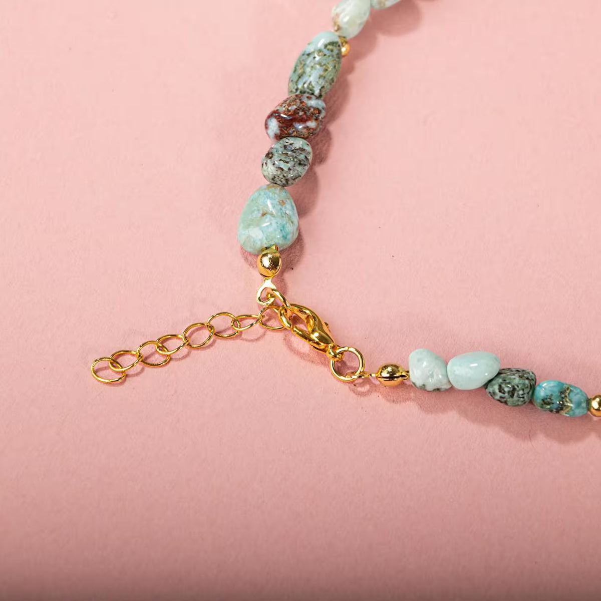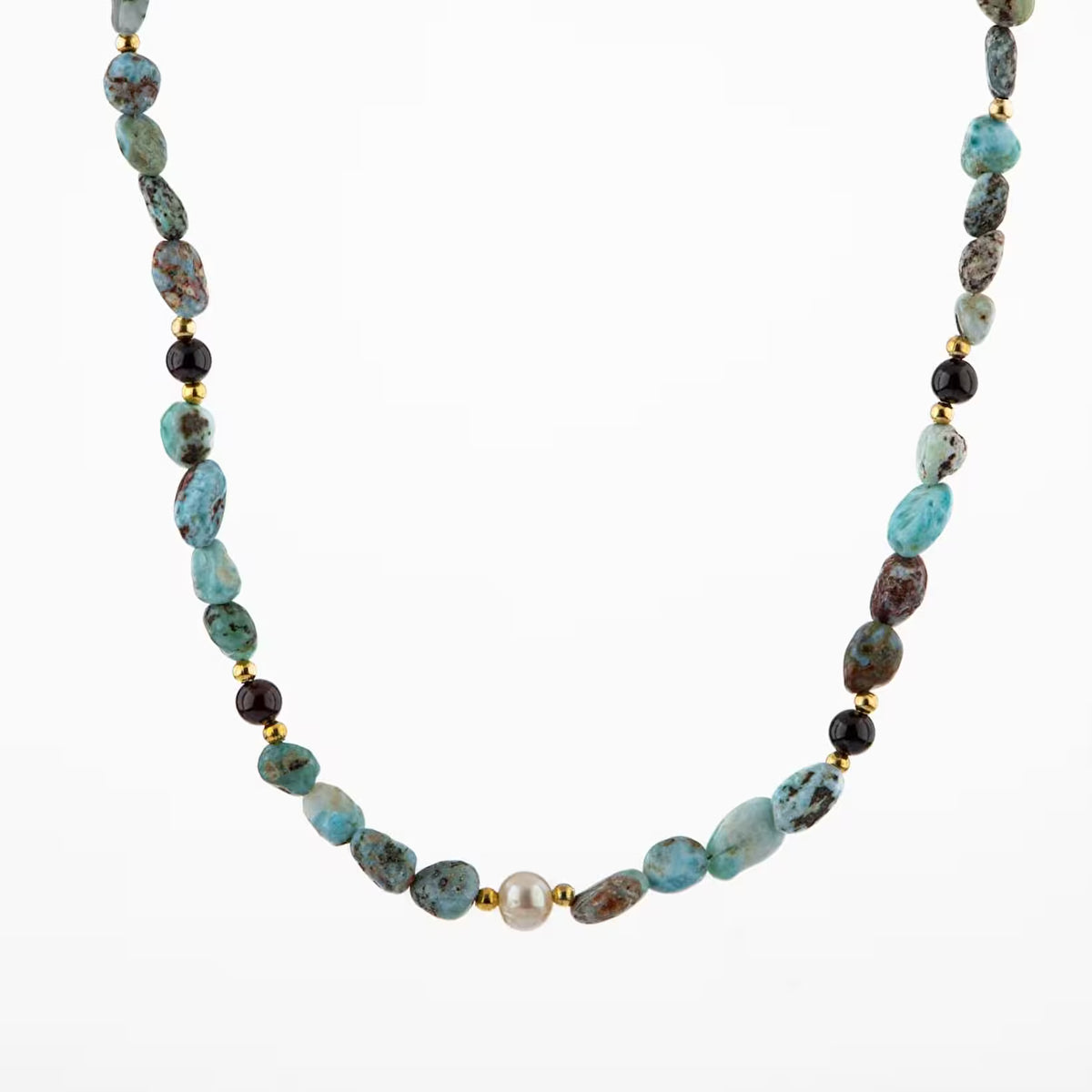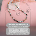 Larimar-Lal-Hematit-İnci-Ay Taşı Altın Kaplama Doğal Taş Kolye