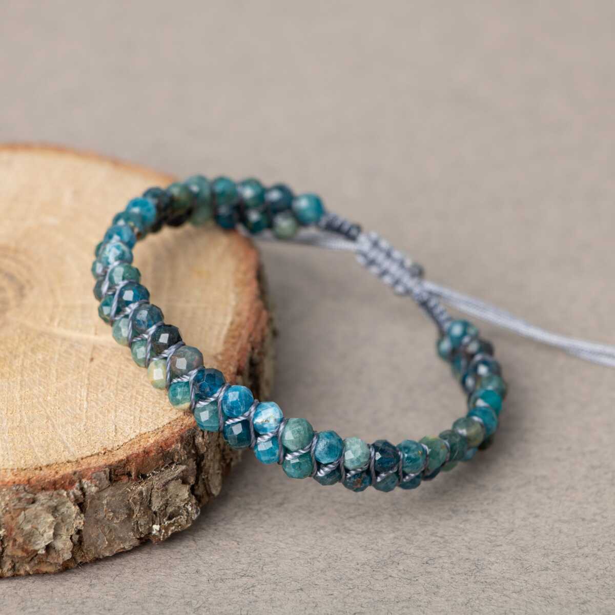 Mavi Apatit 3-4mm Çift Sıra Doğal Taş Bileklik