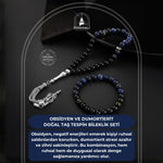 Obsidyen-Dumortierit Doğal Taş Tesbih Bileklik Seti