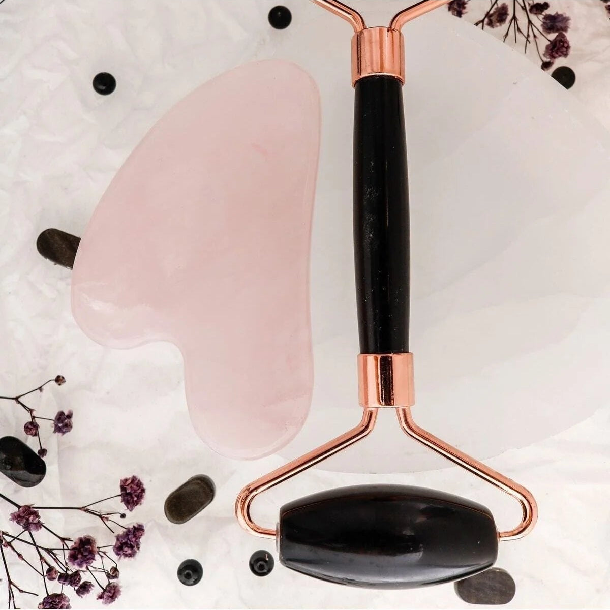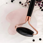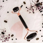 Obsidyen Roller ve Pembe Kuvars Kalpli Gua Sha Takımı