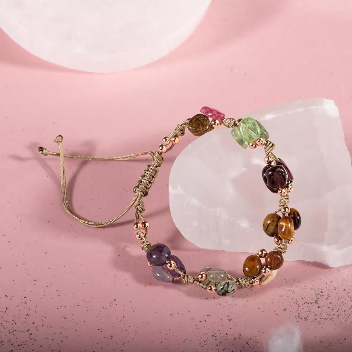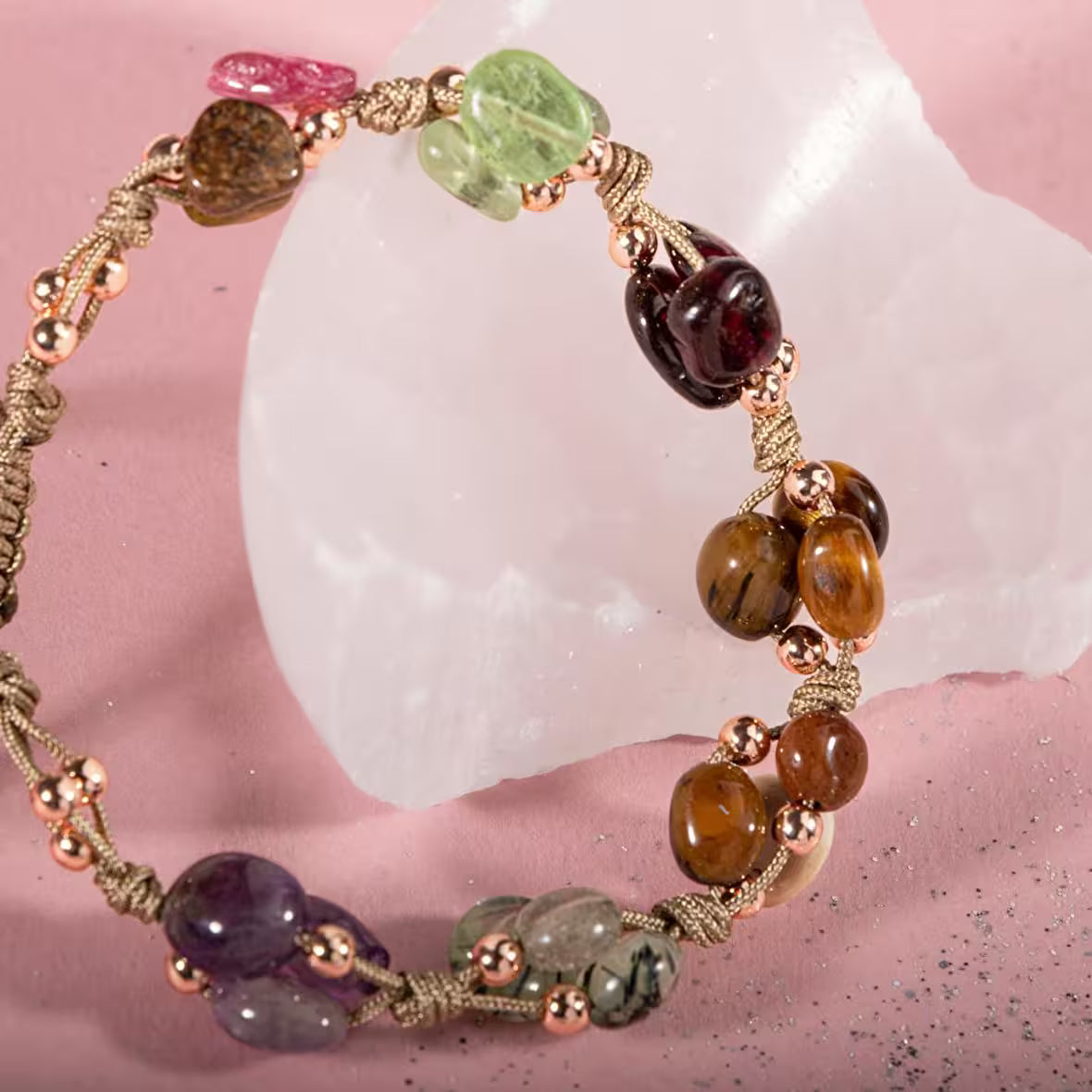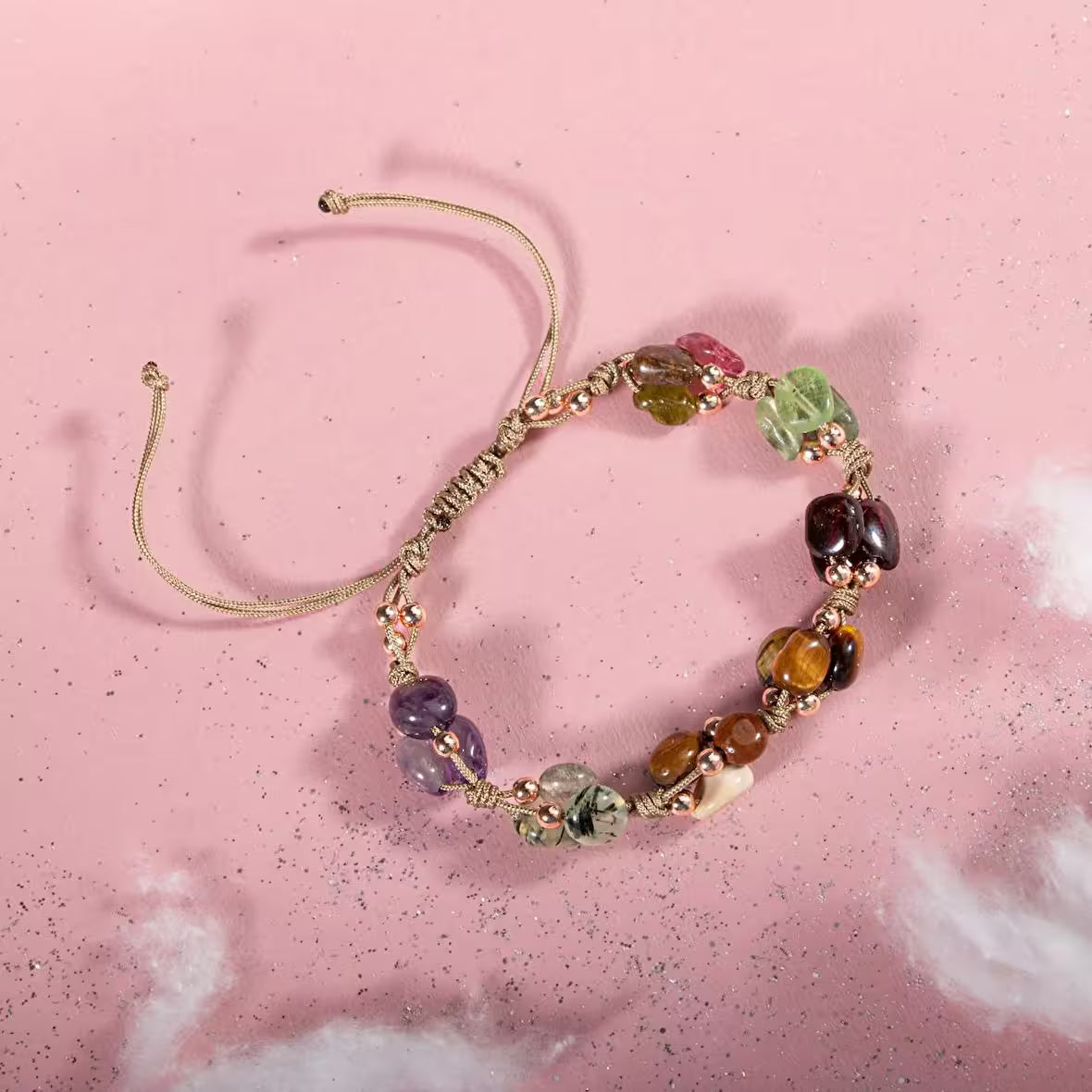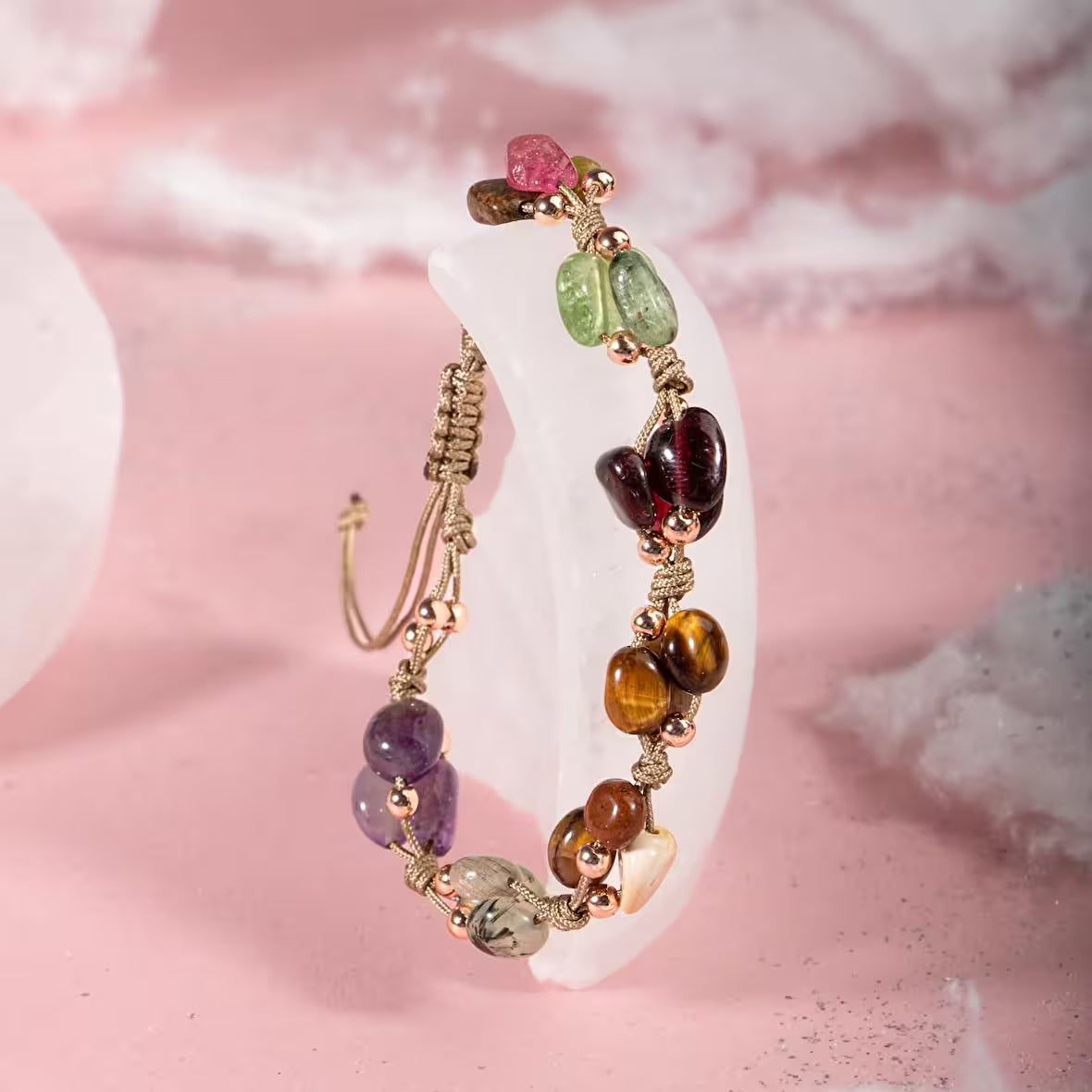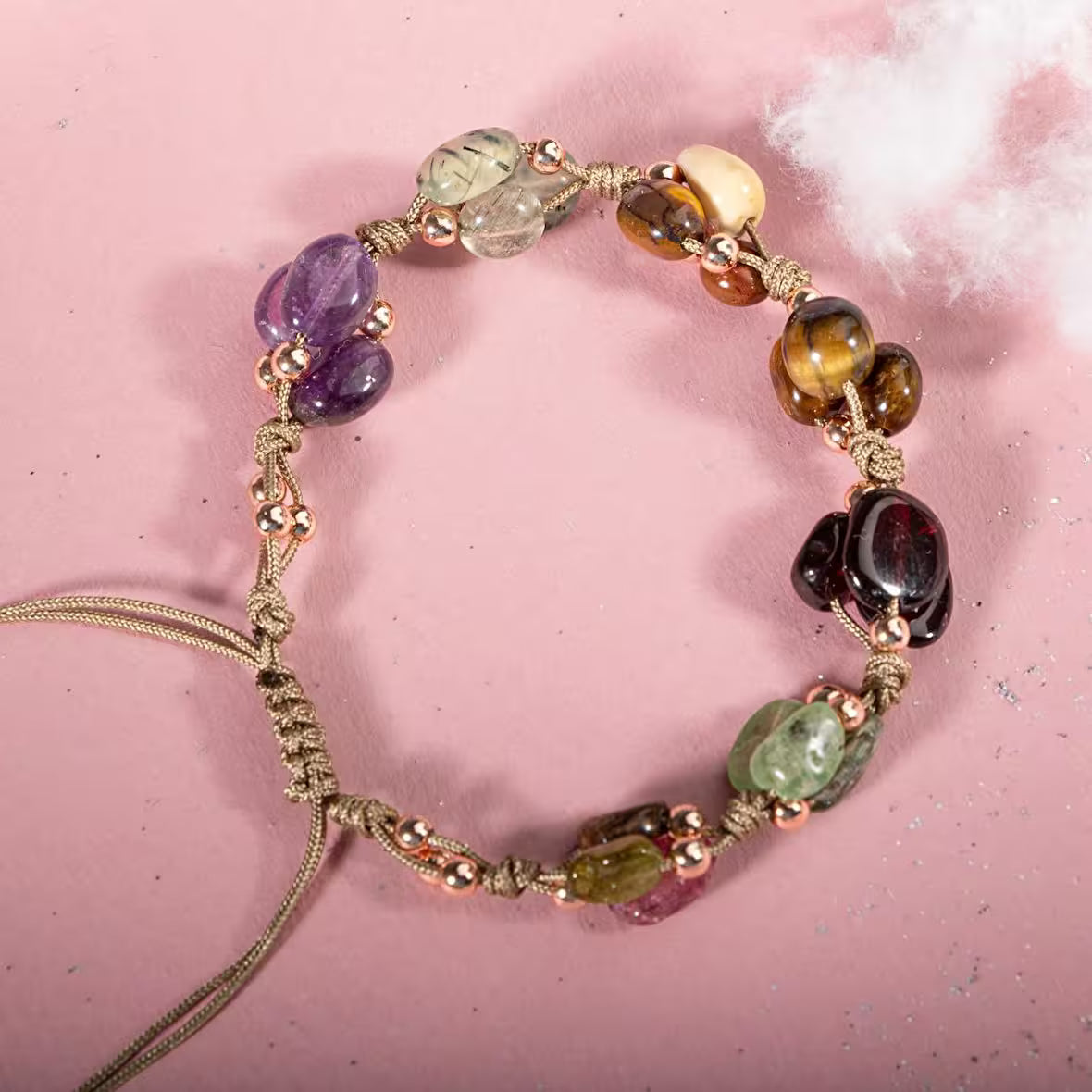 Oğlak Burcu Bileklik Ametist, Bordo Granat Lal, Jasper, Kaplan Gözü, Kunzit, Prehnit, Renkli Turmalin