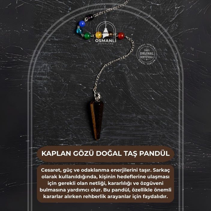 Cesaretin ve özgüvenin simgesi olan kaplan gözü taşı, güçlü koruyucu enerjisi ile dikkat çeker. Bu özel pandül, negatif enerjiyi uzaklaştırarak korkuları azaltır, konsantrasyonu artırır ve içsel gücü harekete geçirir.