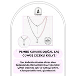 Pembe Kuvars Doğal Taş Gümüş Çiçekli Kolye - 50cm