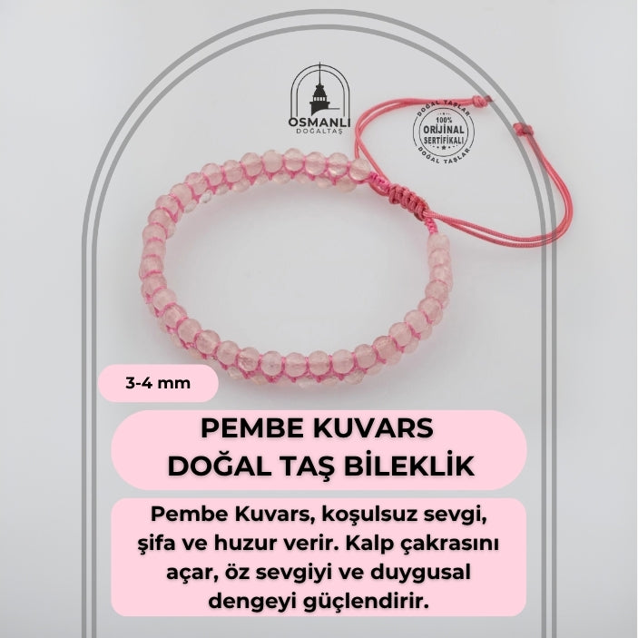 Pembe Kuvars (Gül Kuvars) 3-4mm Çift Sıra Doğal Taş Bileklik
