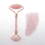 Pembe Kuvars Taşı Masaj Takımı - Roller ve Gua Sha Kaz Ayaklı Set