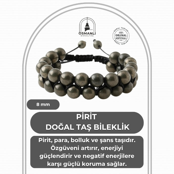 Pirit 8mm Çift Sıra Makrome Doğal Taş Bileklik