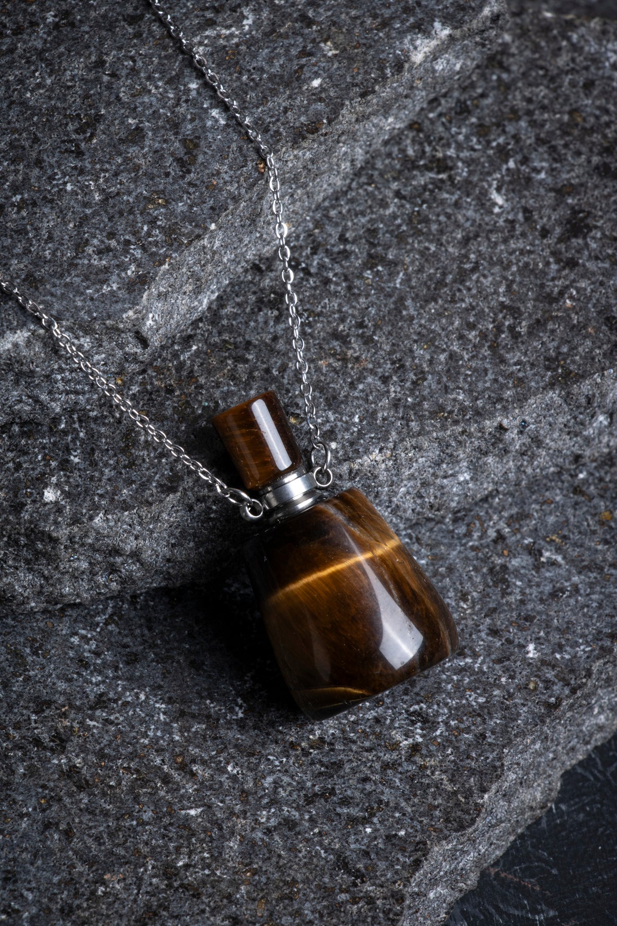 Sertifikalı Kaplan Gözü Doğal Taş Esans Şişesi Kolye