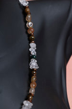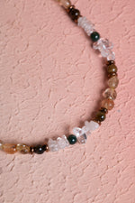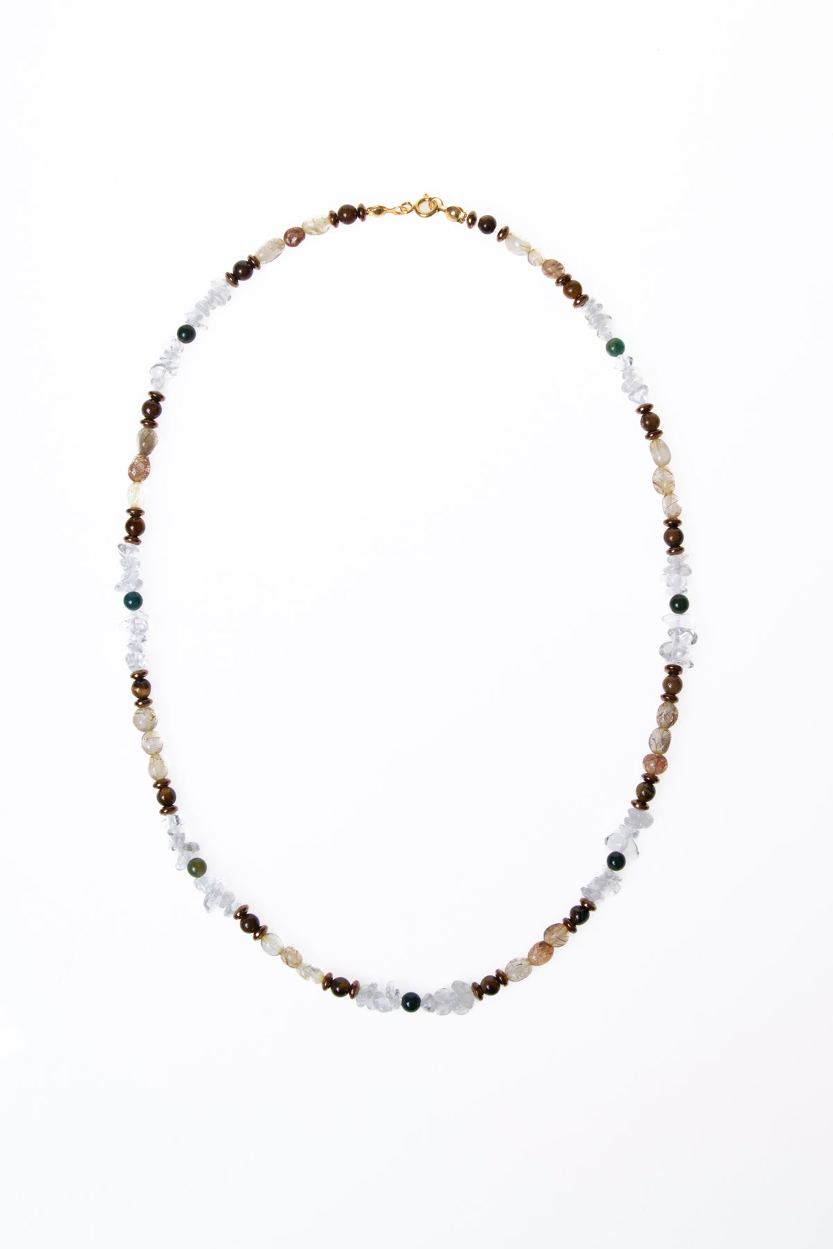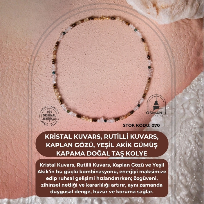 Kristal Kuvars, Rutilli Kuvars, Kaplan Gözü, Yeşil Akik Gümüş Kapama Doğal Taş Kolye