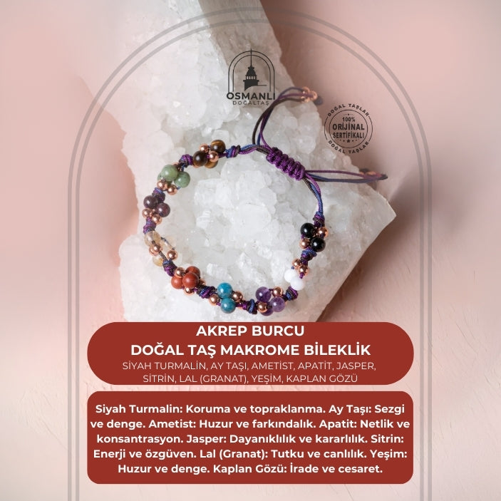 Sertifikalı Akrep Burcu Doğal Taş Makrome Bileklik