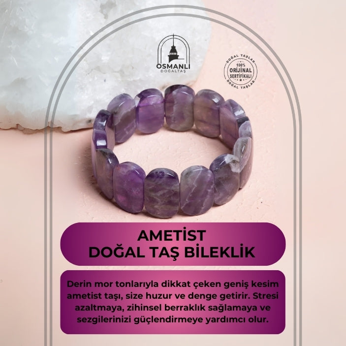 Sertifikalı Ametist Geniş Kesim Doğal Taş Bileklik