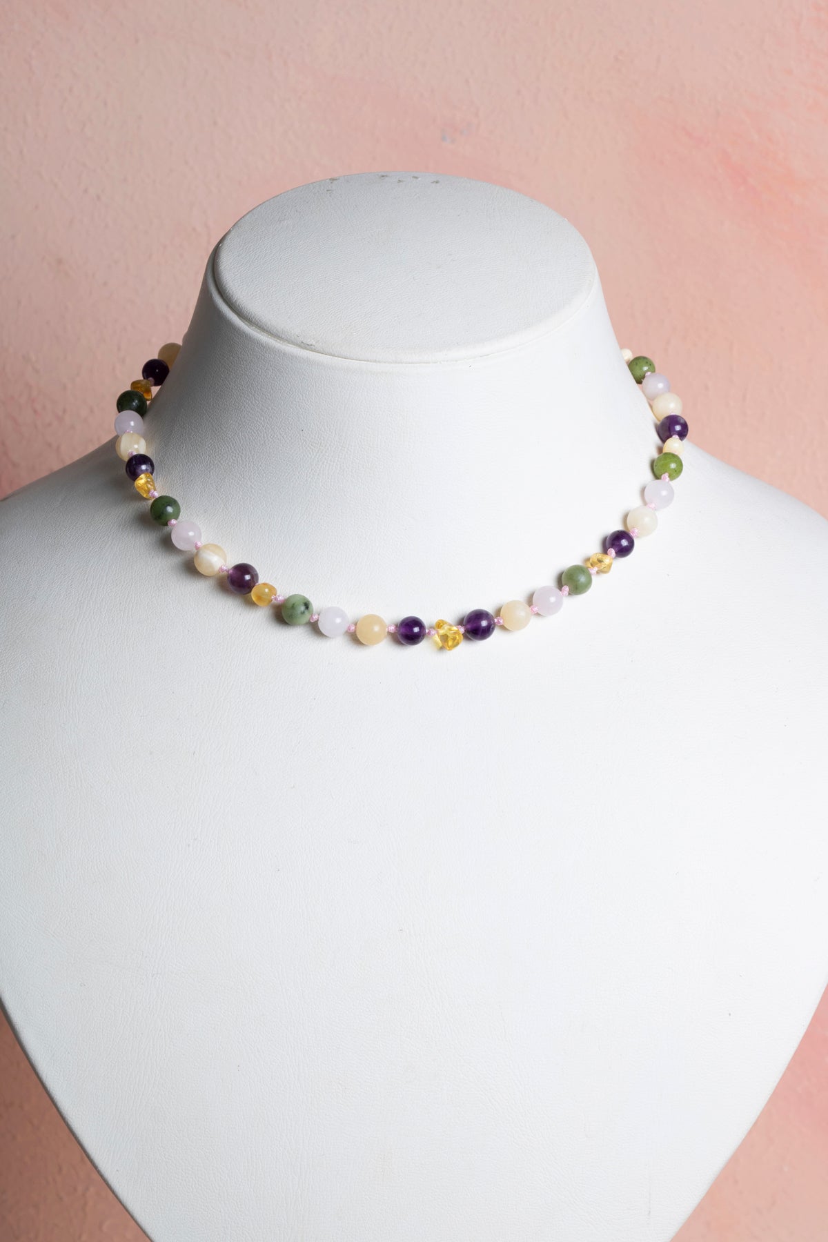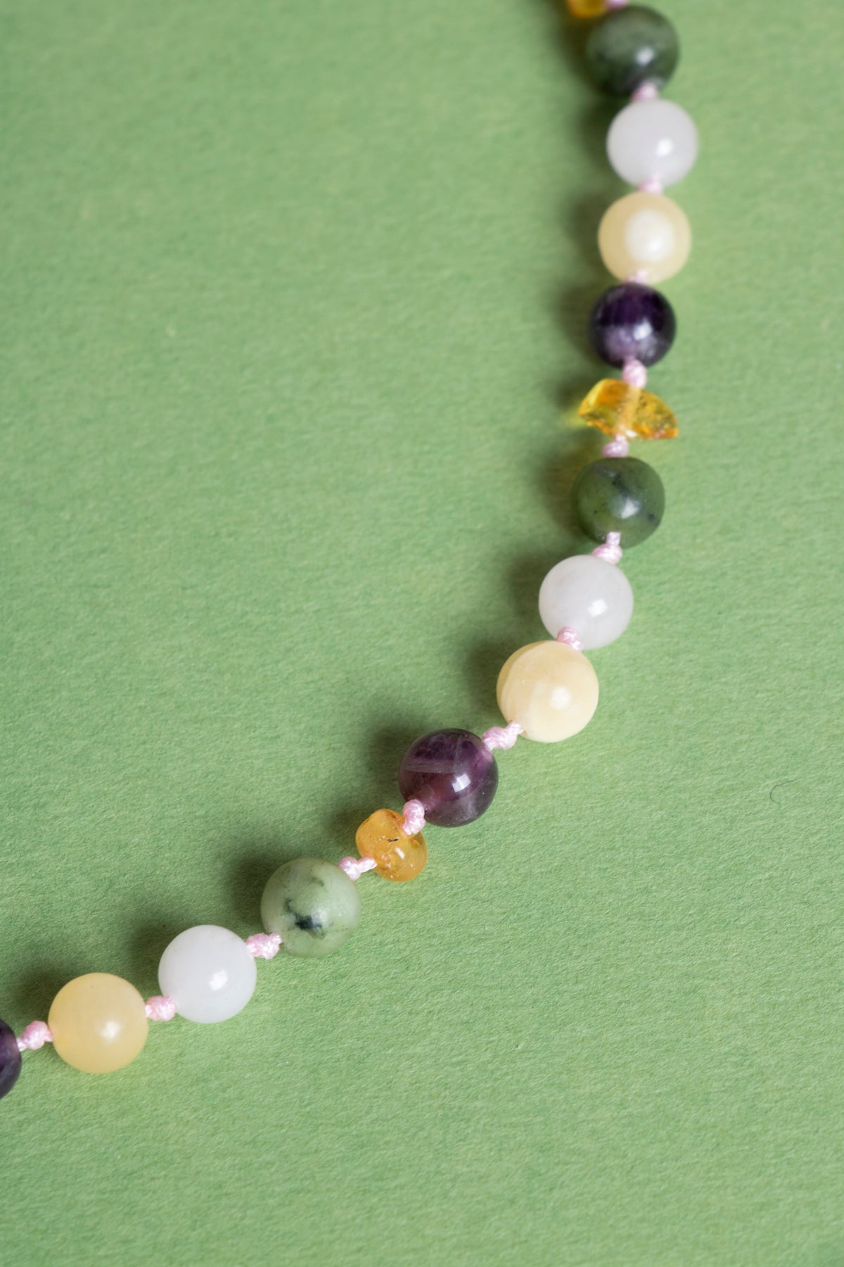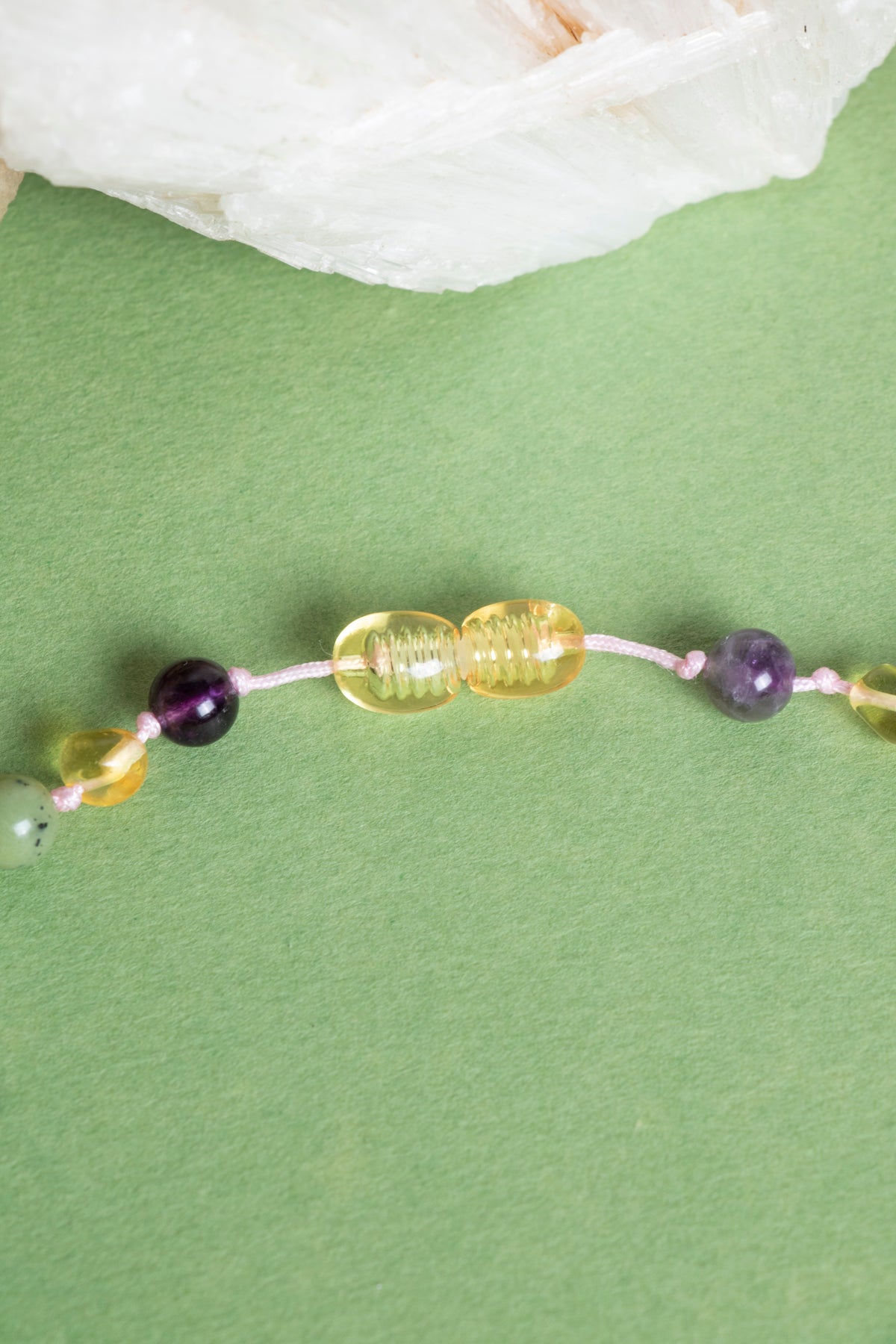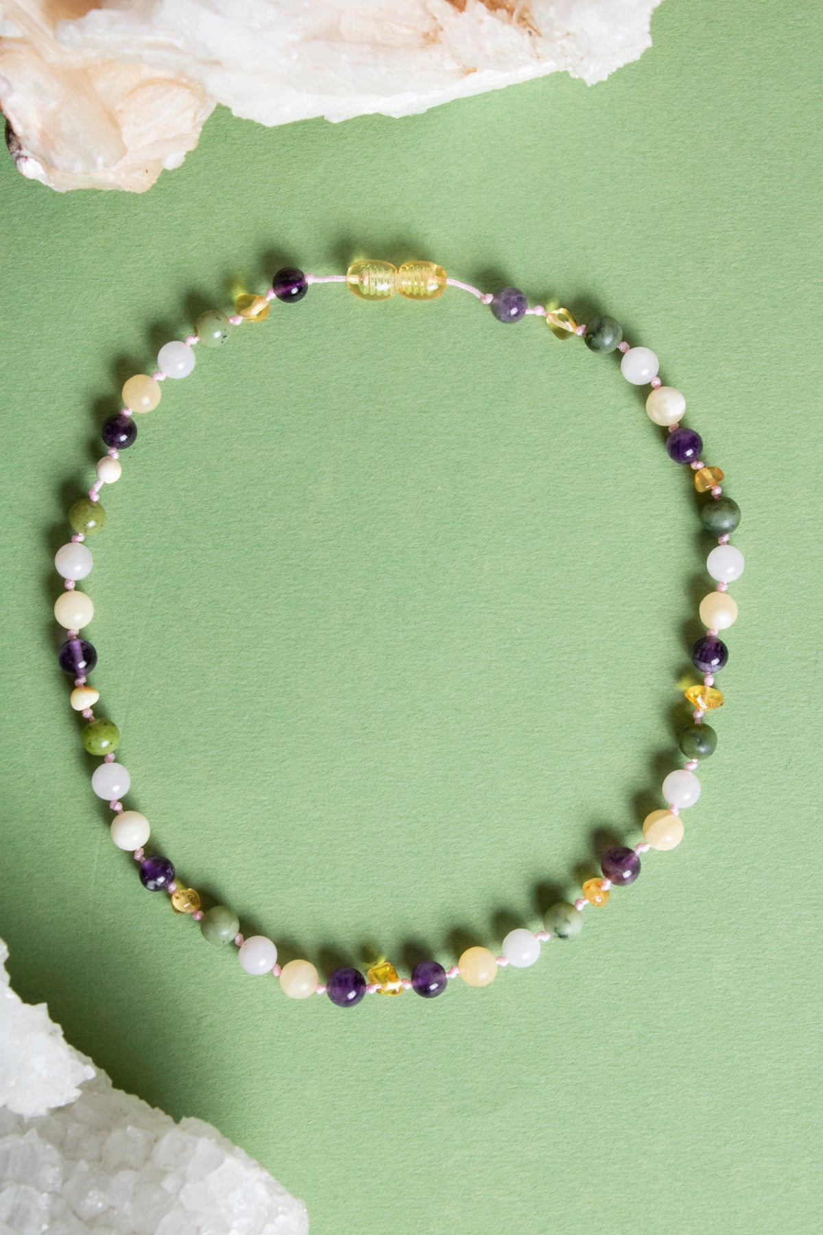 Sertifikalı Bebek Kehribar Kolye- Ametist-kehribar-kalsit-yeşim-pembe Kuvars
