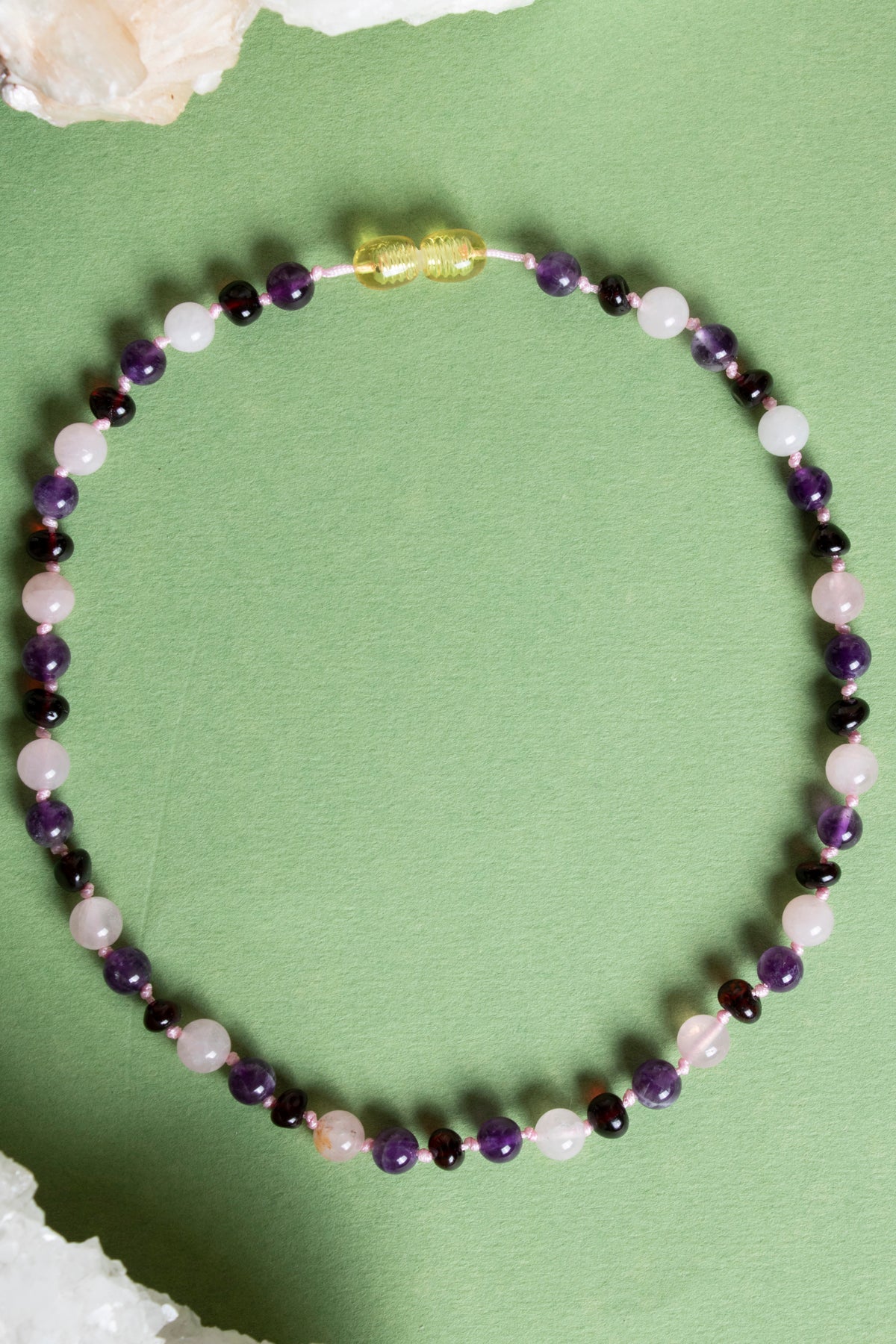 Sertifikalı Bebek Kehribar Kolye-ametist-kehribar-pembe Kuvars (33-35 CM)