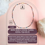 Sertifikalı Boğa Burcu Gümüş Yıldızlı Doğal Taş Kolye