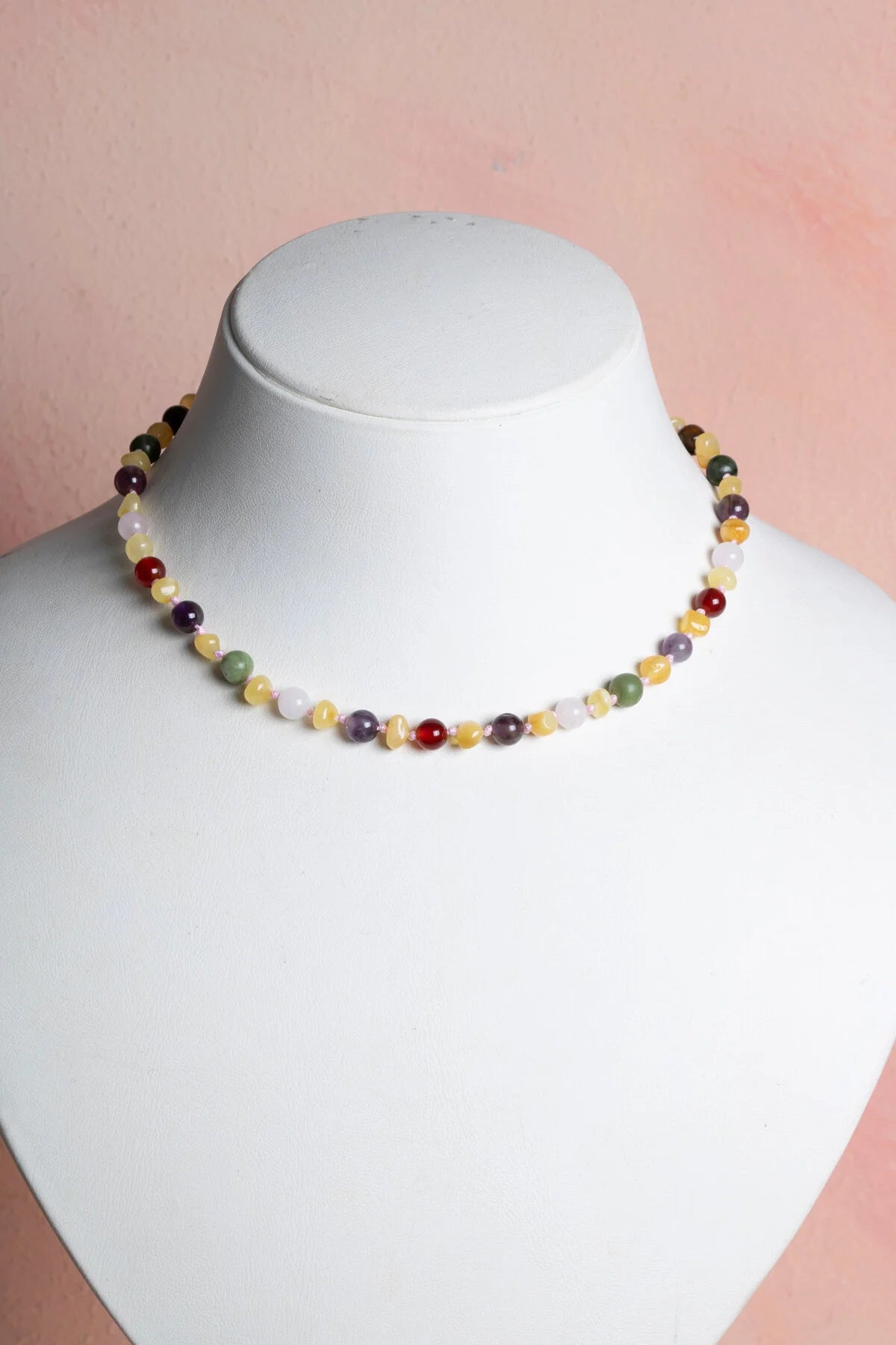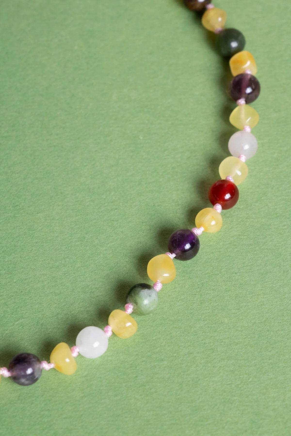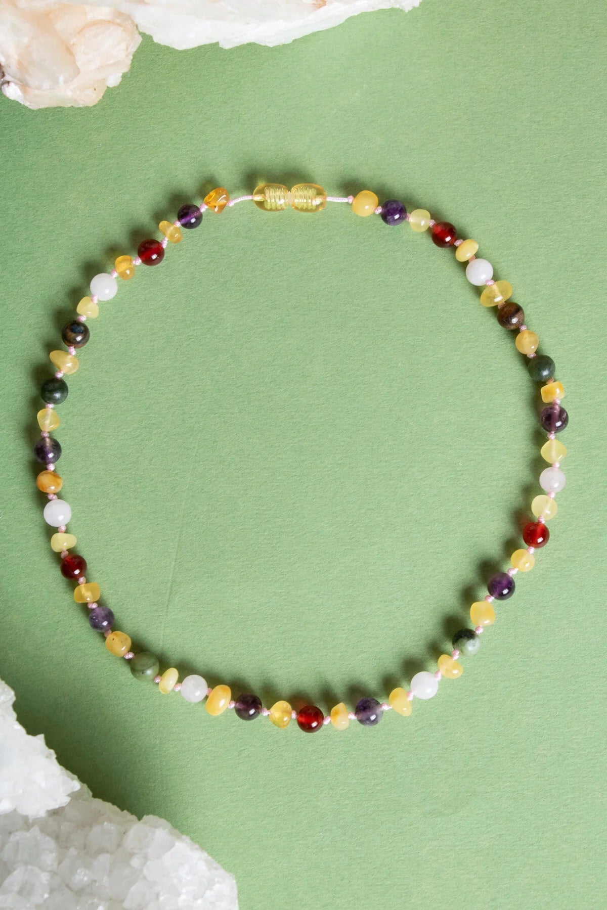 Sertifikalı Doğal Taş Bebek Kolye - Kehribar, Yeşim, Kaplan Gözü, Ametist, Pembe Kuvars, Akik