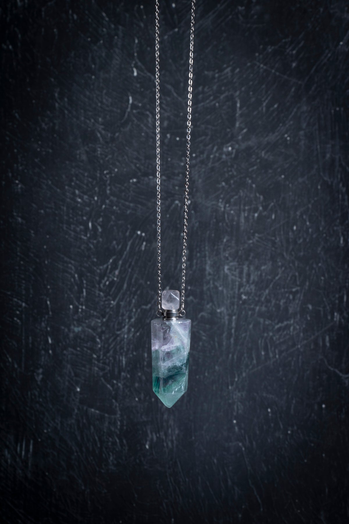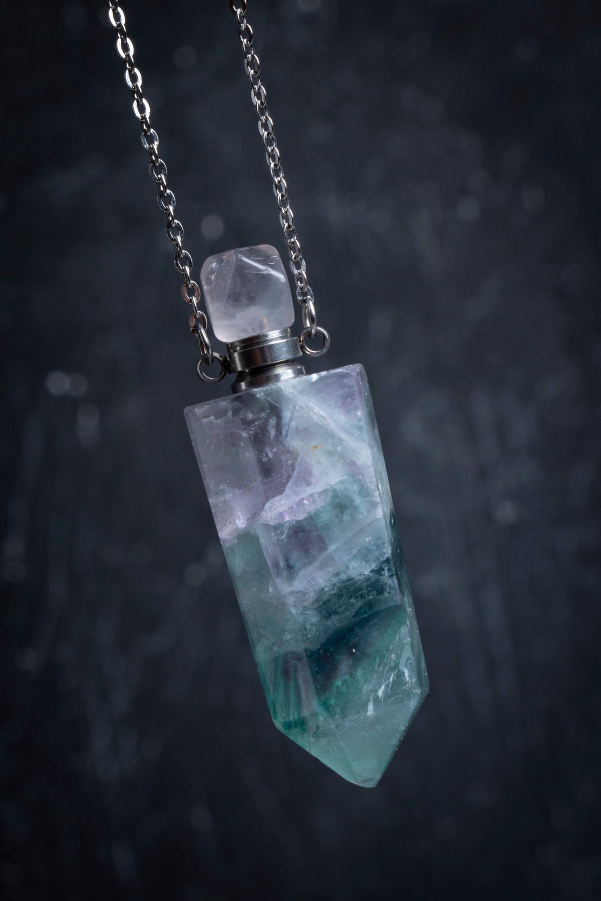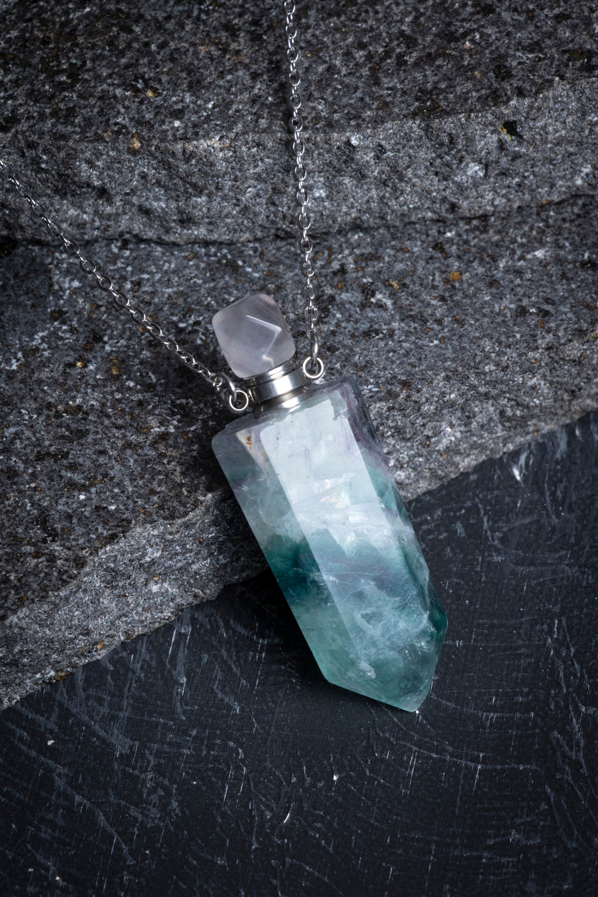 Sertifikalı Florit Doğal Taş Esans Şişesi Kolye