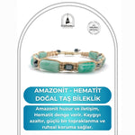 Sertifikalı Hakiki Orijinal Amazonit - Hematit Doğal Taş İpli Bileklik (Köşeli Makrome Model)