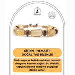 Sertifikalı Hakiki Orijinal Sitrin - Hematit Doğal Taş İpli Bileklik (Köşeli Makrome Model)